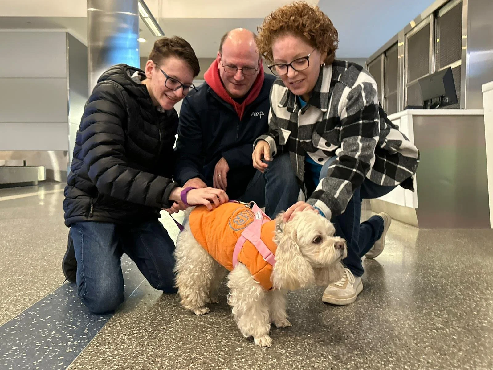 In her new home, Daisy is treated like the adorable little princess that she is. Her family was so excited to meet her at the airport as soon as she got off the plane, and she received an incredibly warm welcome upon arrival. They tell us that she’s doing very well at home, is mostly house trained, and apparently quite stubborn! They are still finding their groove, but she has already claimed her mom’s lap as her favorite place to be and follows her around everywhere. Daisy even howls when she leaves for work! Daisy loves everyone in the family, though, and spends most of the day with her big brother. The two are best buds and enjoy lots of walks and snuggle-times together. They’re all looking forward to sharing sunny beach trips and mild hikes with their furry family member!