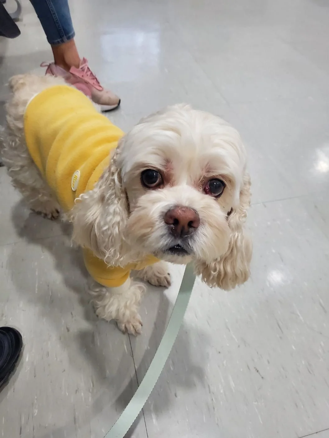 This darling little cocker spaniel mix was rescued in February 2023 when she flew here from South Korea as one of our Freedom Flyers. Thanks to our rescue partners known as the Cocker Moms, Daisy was found at an animal shelter there and had cherry eye surgery on her left eye prior to traveling to America. Weighing only 18 pounds, she’s a petite little lady estimated to be 4-6 years of age. She’s super friendly despite having been treated like the ugly duckling of the pack. Daisy just wants to be loved and play with toys all day!