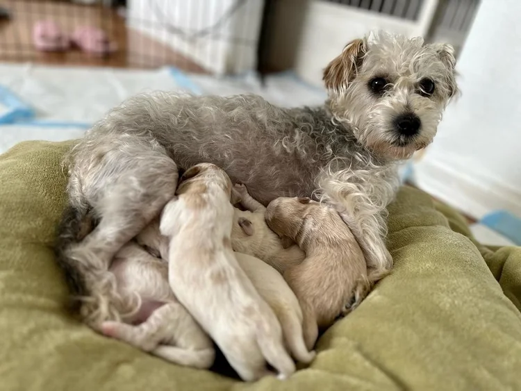 Cookie & her 5 three-day-old puppies (Butterscotch, Chip, Graham, Peanut & Waltnut) were wll rescued from under a dumpster by the North Central shelter!