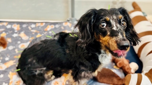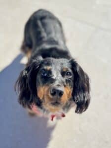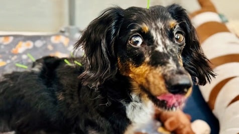 Dolce, who is very much not a cocker spaniel, joined Camp Cocker Rescue in the middle of a medical crisis! She had a disc ruptured in her back and was acutely paralyzed for several days. Her former owner had been desperately trying to find a rescue organization where she could relinquish Dolce!