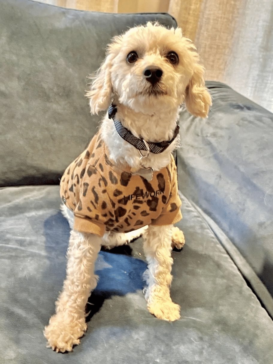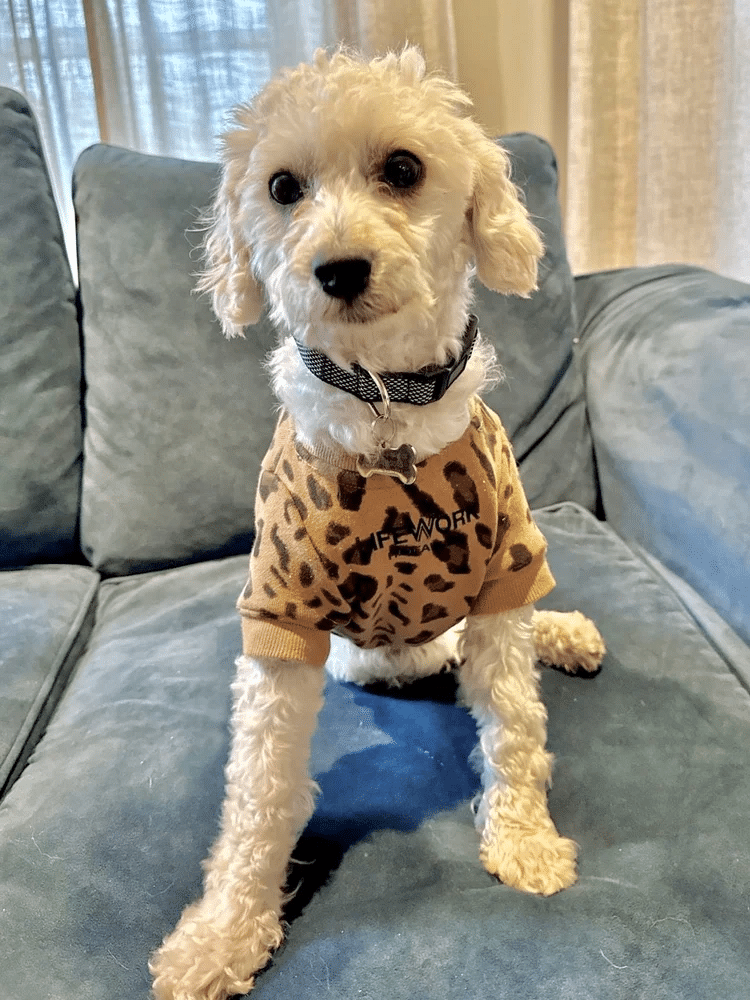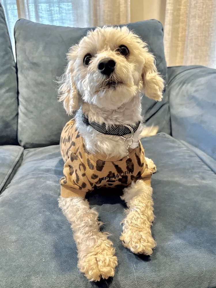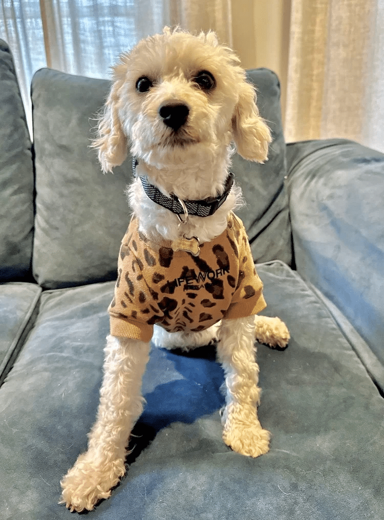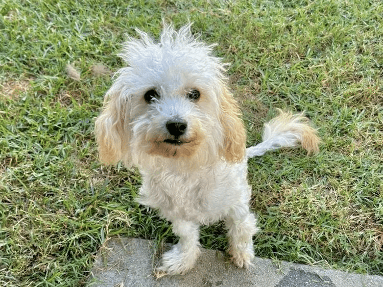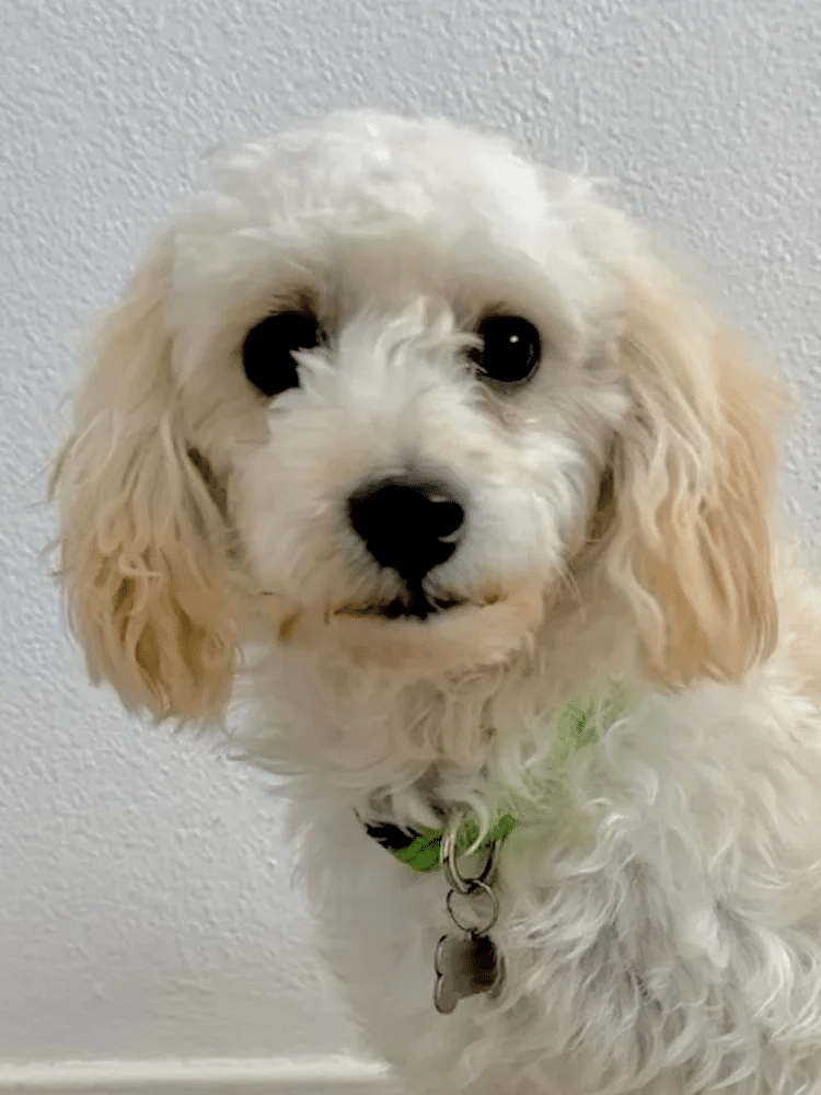 His name is KEWPIE and he is a sweet, friendly, little Maltipoo mix! He’s currently about 1 year old as of February 2025, and he weighs 16 pounds.