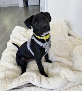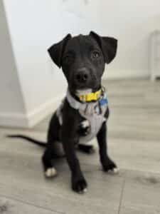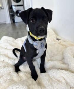 Tuxedo was rescued on 8/2/25, from the Animal Resource Center in Ontario along with his siblings, Laguna & Mr. Pickles! Mama Sandy & her puppies had just been surrendered, and the call was urgent!