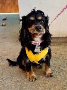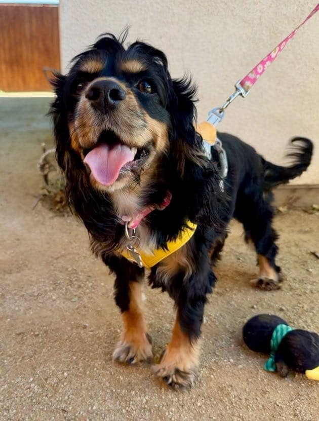 Wednesday was relinquished by her owners on May 11, 2025. She’s a beautiful young tri-color Cocker Spaniel, born in January of 2024, and weighing 18 pounds when rescued.