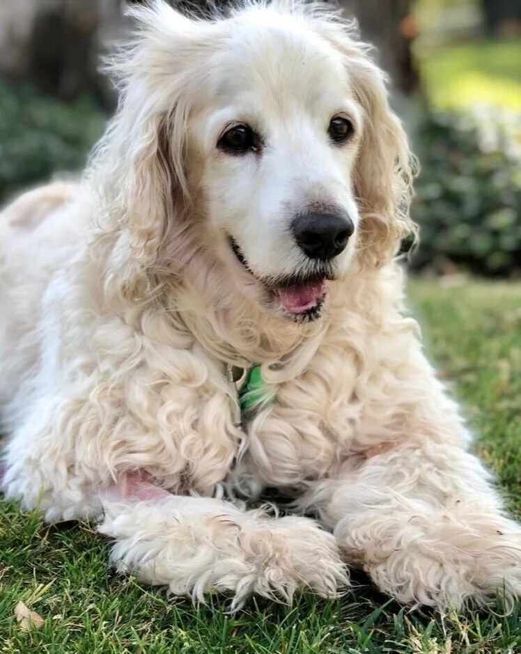 This sweet gentle soul was quite a bit of a project when we first rescued him. A 9 to 12 year old Retriever-Spaniel mix, we rescued Marlin from the East Valley Shelter in January 2020. He had to be hospitalized for a bad cough, requiring multiple sets of x-rays, and we’d even taken him for a cardiologist workup to rule out any heart issues. Turns out his ticker was normal for a senior dog. Through process of elimination, it’s likely that Marlin has a permanent cough from scar tissue damage. His mouth was rotted and he needed oral surgery to extract so many of his teeth. This sweet Grandpa is always happy and smiling, despite having no teeth! Marlin was so docile and gentle, just the perfect little older gentleman.