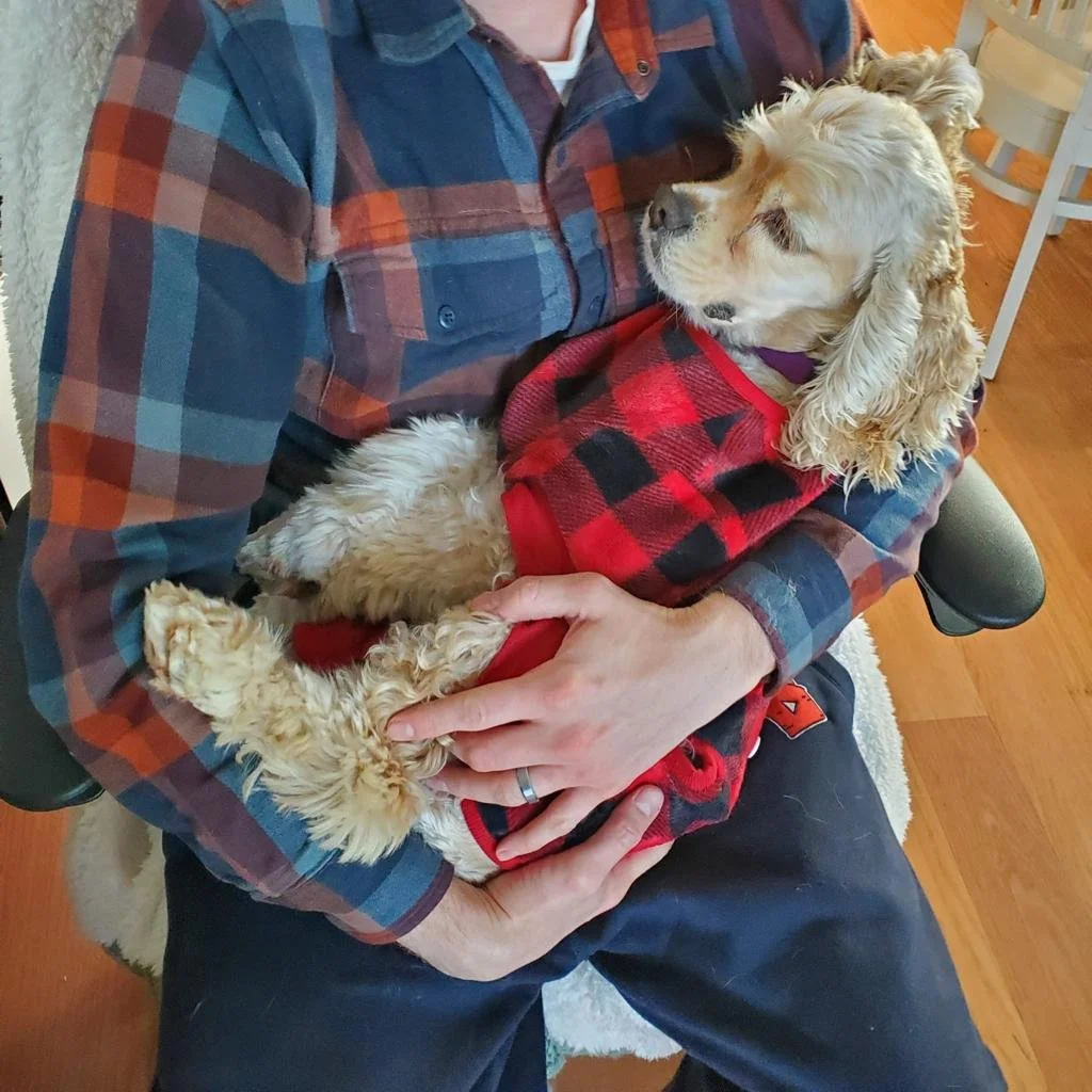Patrick made himself right at home with his new momma. He has so much fun walking the trails with her, playing with alll of his toys, and is just so joyous and playful. The two have been reveling in their newfound friendship. Patrick LOVES car rides and although he can sometimes act like a stubborn old man, nothing motivates him like treats! He is exceptionally good with his cat sister, and the first time they met they just looked at one another and went to their own beds to nap. Patrick must have good energy! His mom says he is perfect and she plans to give him the most spoiled and pampered life of love after the hardships he’s endured. He deserves the very best.